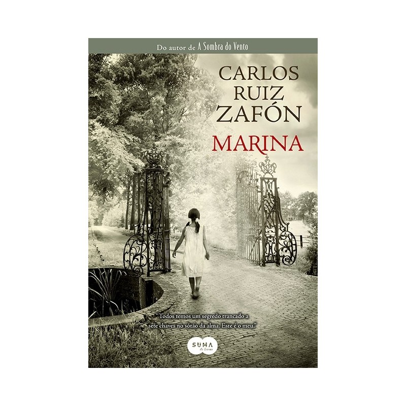 Antes de lançar o best-seller mundial que o consagrou, com mais de 10 milhões de exemplares vendidos, Carlos Ruiz Zafón já tinha escrito diversos outros livros no início de sua carreira. Dentre esses, Marina, que já contém alguns dos traços estilísticos presentes em A Sombra do Vento, é o último antes do grande sucesso literário de Zafón. "De todos os livros que publiquei, Marina é um dos meus favoritos", afirma Zafón. "É possivelmente o mais indefinível e difícil de categorizar de todos os romances que escrevi, e talvez o mais pessoal de todos eles. Neste livro, Zafón constrói um suspense envolvente em que Barcelona é a cidade-personagem, por onde o estudante de internato Óscar Drai, de 15 anos, passa todo o seu tempo livre, andando pelas ruas e se encantando com a arquitetura de seus casarões. É um desses antigos casarões aparentemente abandonados que chama a atenção de Óscar, que logo se aventura a entrar na casa. Lá dentro, o jovem se encanta com o som de uma belíssima voz e por um relógio de bolso quebrado e muito antigo. Mas ele se assusta com uma inesperada presença na sala de estar e foge, assustado, levando o relógio. Dias depois, ao retornar à casa para devolver o objeto roubado, conhece Marina, a jovem de olhos cinzentos que o leva a um cemitério, onde uma mulher coberta por um manto negro visita uma sepultura sem nome, sempre à mesma data, à mesma hora. Os dois passam então a tentar desvendar o mistério que ronda a mulher do cemitério, passando por palacetes e estufas abandonadas, lutando contra manequins vivos e se defrontando com o mesmo símbolo - uma mariposa negra - diversas vezes, nas mais aventurosas situações por entre os cantos remotos de Barcelona. Tudo isso pelos olhos de Óscar, o menino solitário que se apaixona por Marina e tudo o que a envolve, passando a conviver dia e noite com a falta de eletricidade do casarão, o amigável e doente pai da garota, Germán, o gato Kafka, e a coleção de pinturas espectrais da sala de retratos. Em Marina, o leitor é tragado para dentro de uma investigação cheia de mistérios, conhecendo, a cada capítulo, novas pistas e personagens de uma intrincada história sobre um imigrante de Praga que fez fama e fortuna em Barcelona e teve com sua bela esposa um fim trágico. Ou pelo menos é o que todos imaginam que tenha acontecido, a não ser por Óscar e Marina, que vão correr em busca da verdade - antes de saber que é ela que vai ao encontro deles, como declara um dos complexos personagens do livro.